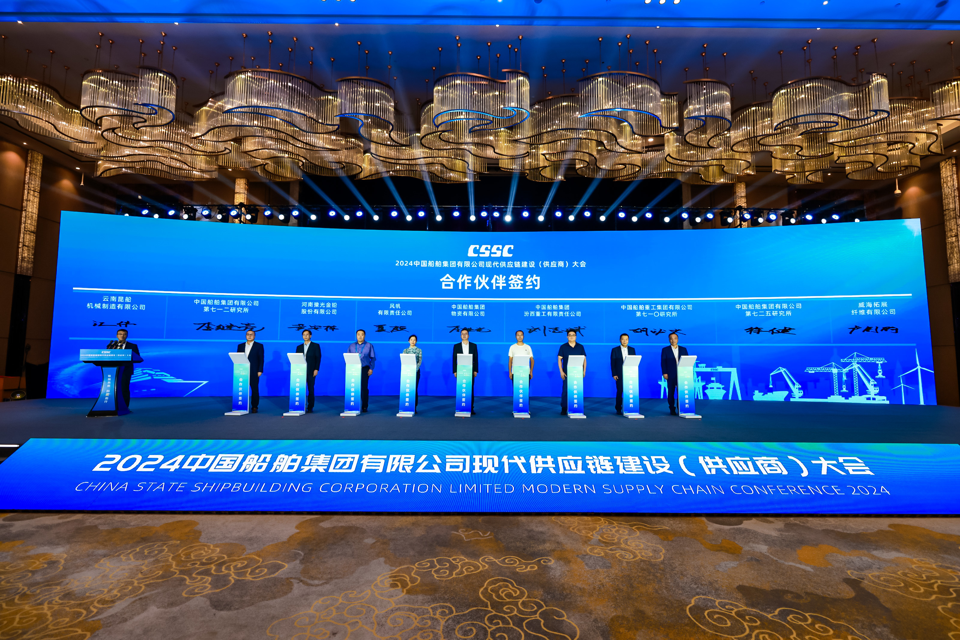 11月15日,中国船舶集团有限公司2024现代供应链建设(供应商)大会在福建省福州市举行。会上,太阳成集团tyc7111全资子公司威海拓展纤维有限公司荣获中国船舶集团金牌供应商荣誉称号,太阳成集团tyc7111董事长卢钊钧代表公司与中国船舶七二五所签订合作伙伴协议。